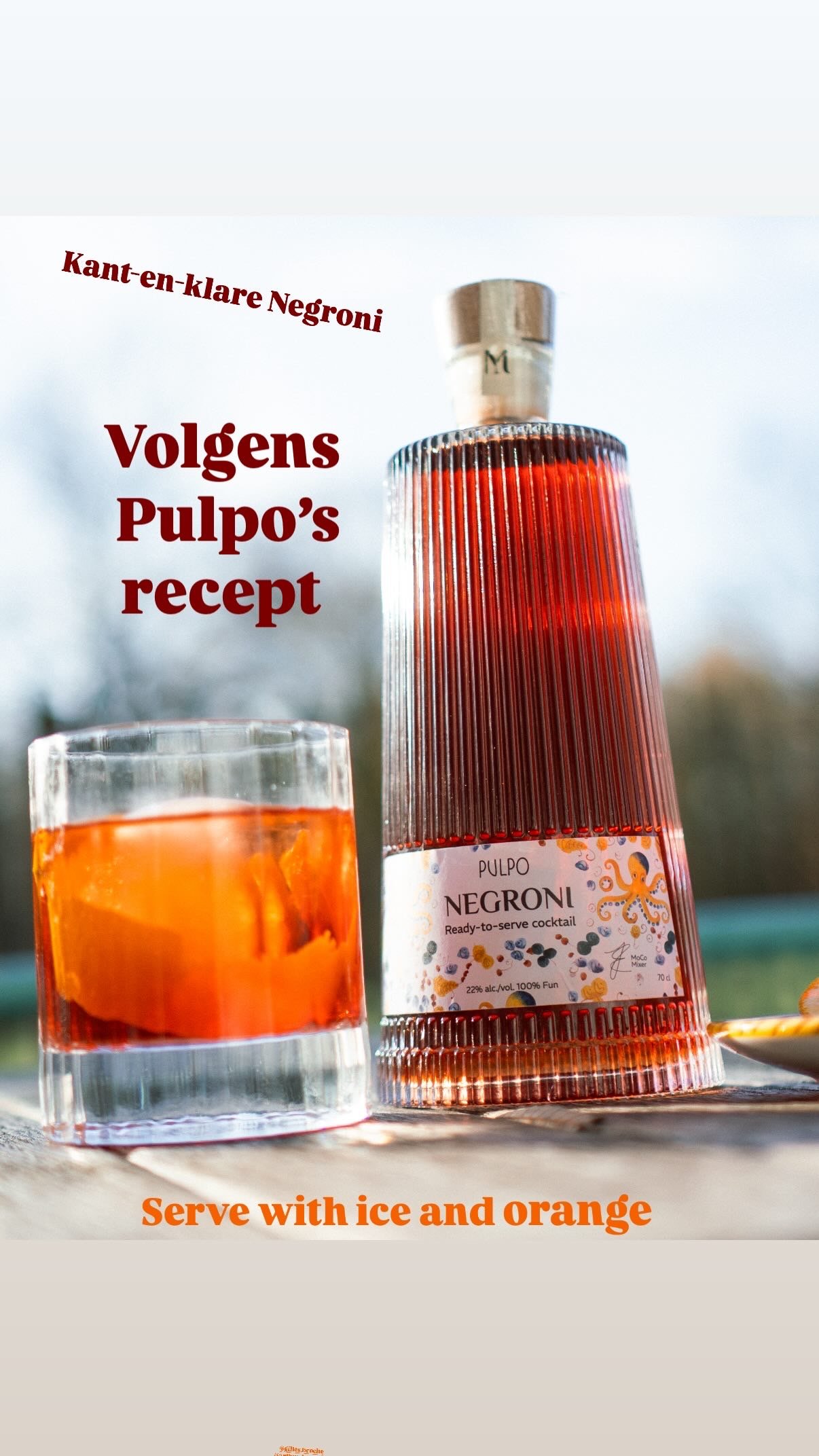 De Pulpo Negroni is te koop in restaurant Pulpo tijdens onze openingsuren. (dinsdag tem zaterdag) à €35,50 per fles.